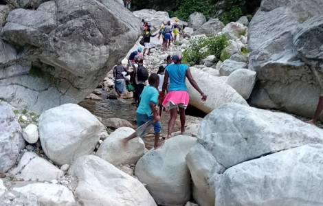 Pourcine-Pic Makaya (Agencia Fides) – “He pasado tres días visitando la capilla de San Bernardo con motivo de la fiesta patronal. Ha sido un viaje arduo y agotador que, si por un lado muestra lo difícil que es avanzar en un país en estas condiciones, por otro lado, vuelve a poner de manifiesto la fuerza y el coraje de la gente que se desplaza cargando con pesadas mochilas por un territorio extremadamente inaccesible y sin vías de comunicación. Cuatro horas desde Pourcine-Pic Makaya hasta Nan Myiel, primero remontando el lecho del río y luego un sendero que lleva a la localidad”.